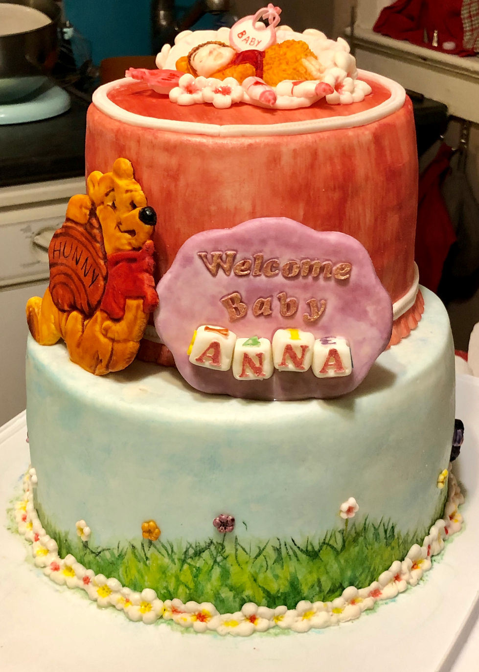 Strawberry Cake with Vanilla Buttercream and Marshmallow Fondant décor.